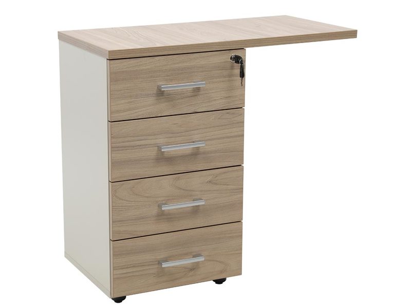 - тумба снабжена центральным замком и оснащена пластмассовым лотком для канцелярских принадлежностей в верхнем ящике